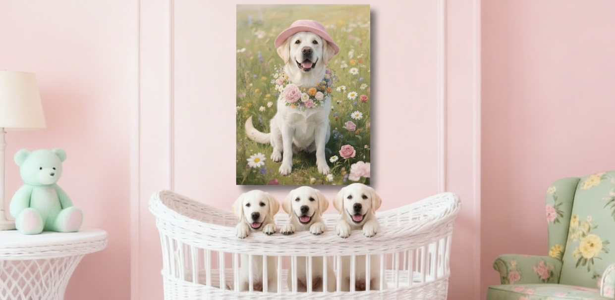 White Lab with Hat & Flower Garland | Wall Art